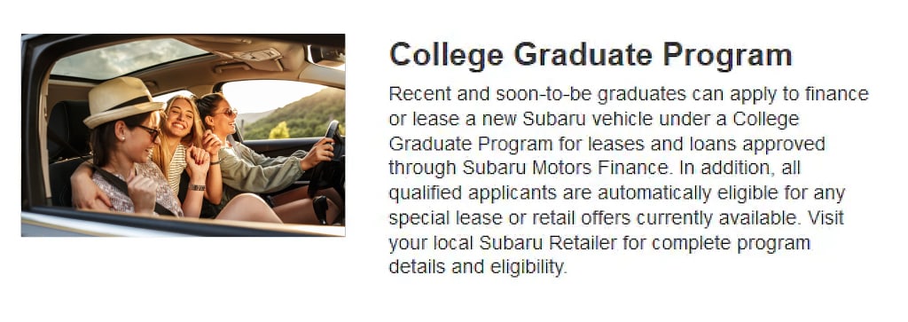 Offer valid on New in-stock Subaru Vehicles very well-qualified buyers when financed w/ Subaru Motor Finance. Credit terms based on individual bank approval. No down payment required. Other rates and payment terms available. Financing for well-qualified applicants only. Length of contract is limited. Subject to credit approval, vehicle insurance approval and vehicle availability. Final sale prices exclude tax, tags, and fees. Not compatible with Lease. Not compatible with Previous Loaner Vehicle Models. Cannot be combined with other Special Programs. Some Gap-products may not cover contracts with deferred first payment. Business-loans require a co-borrower.